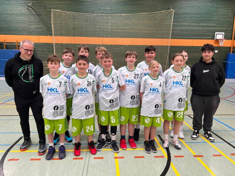 U12-Basketballer bedanken sich bei HKL-Anlagenbau für einen neuen Satz WarmUp-Shirts!